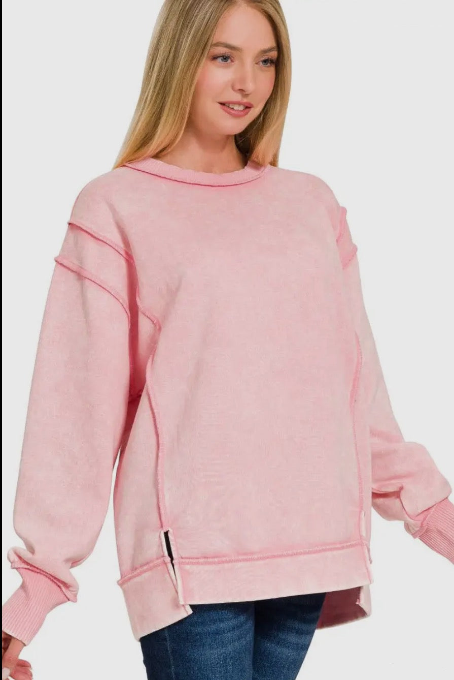 Acid Wash Sweatshirt With Exposed-seam And Trim Detail